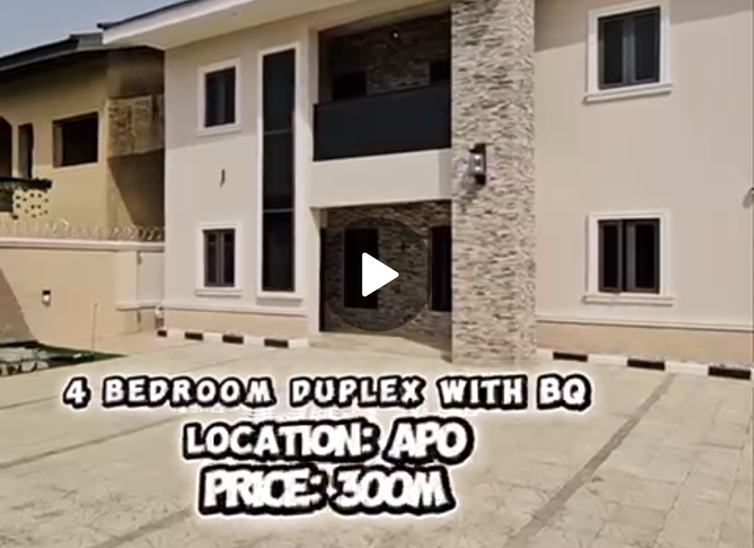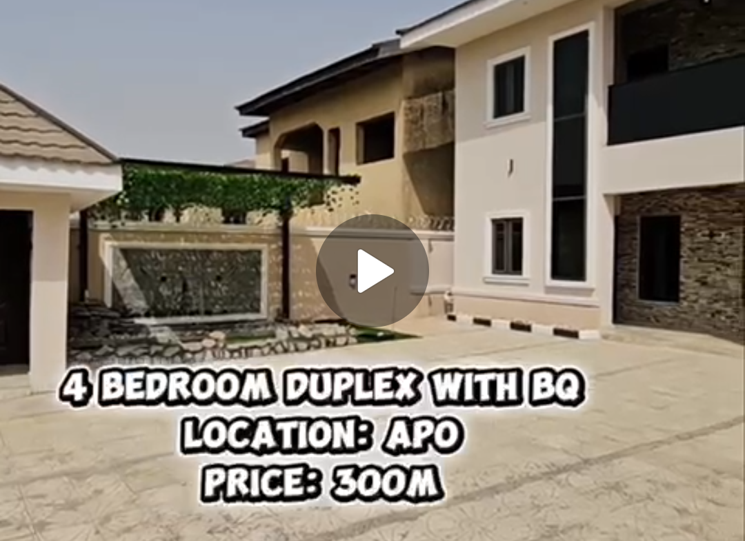 Spacious 4 bedroom duplex with bq and two living room for sale in an estate in apo primary school axis price 300m, professional fee 5percent
