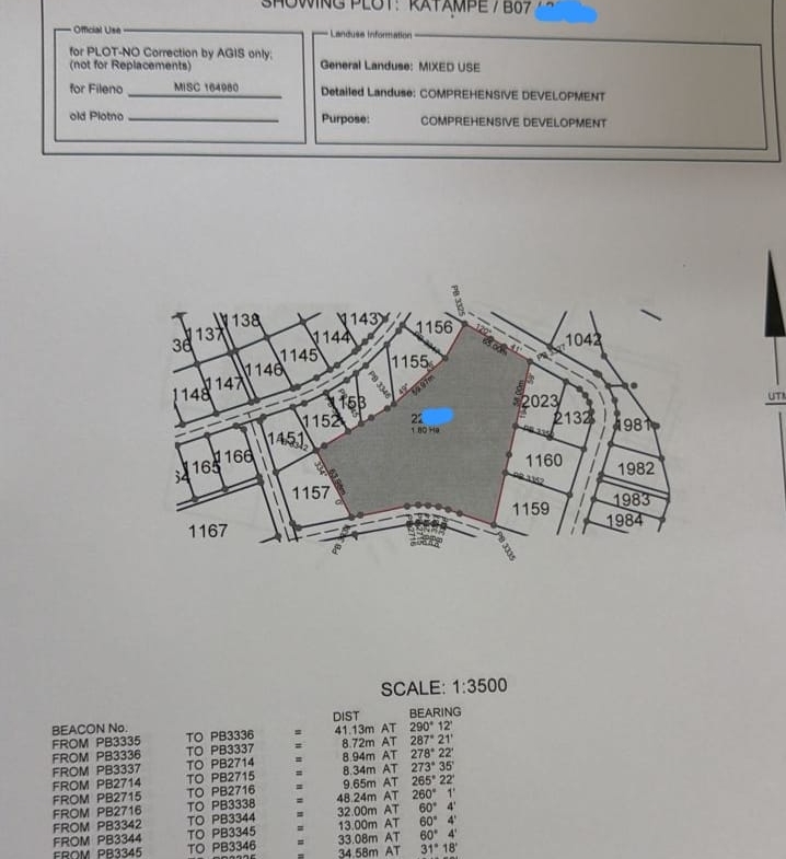 A 1.8 hectare mixed used Comprehensive land is available for sale in Katampe main